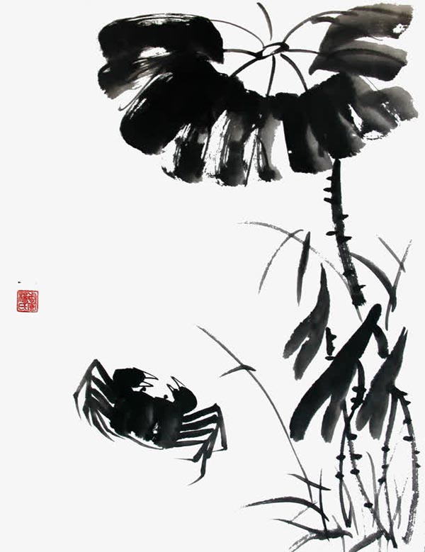 水墨荷叶螃蟹