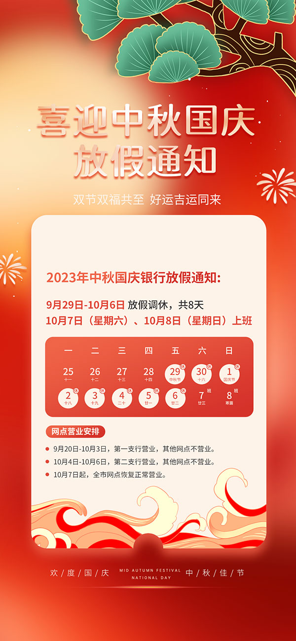 中秋国庆银行放假通知海报