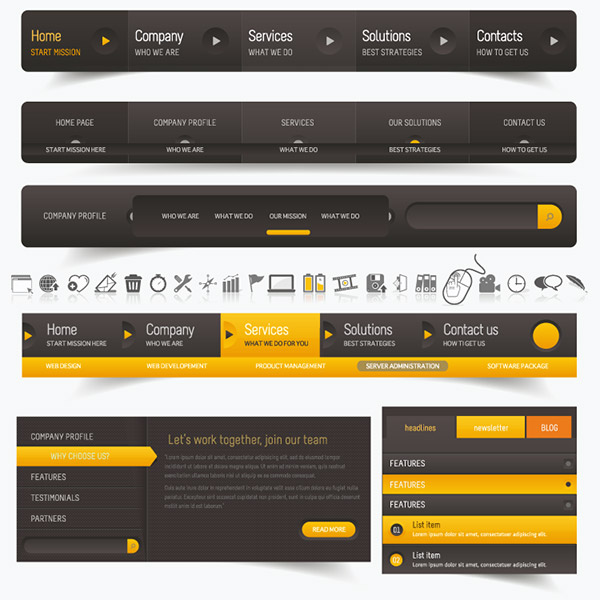 黄黑配色网页导航菜单