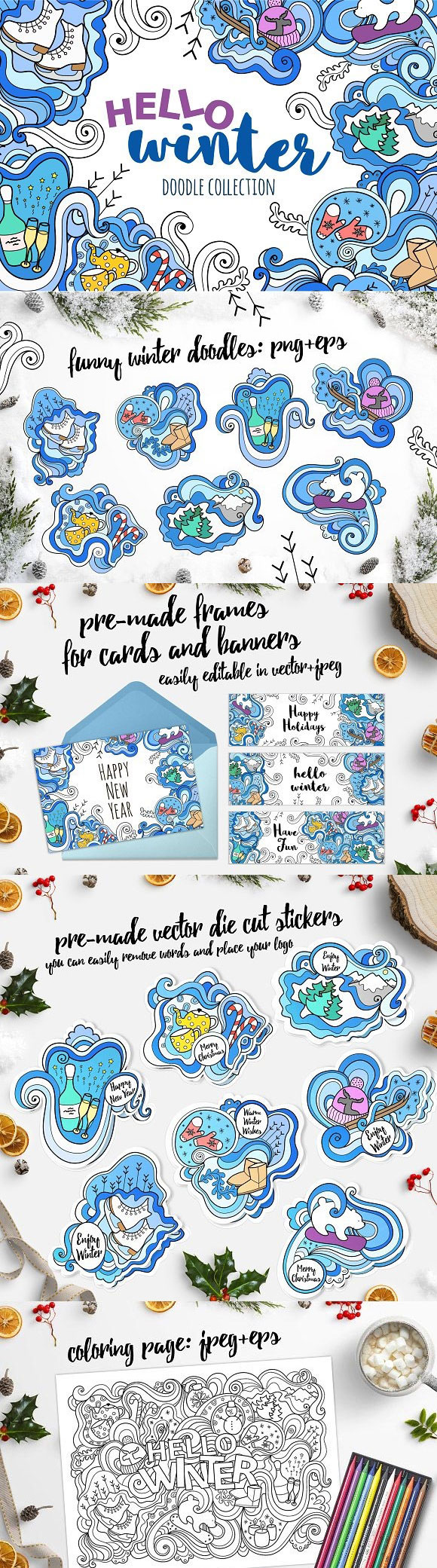 手绘冬季涂鸦波浪