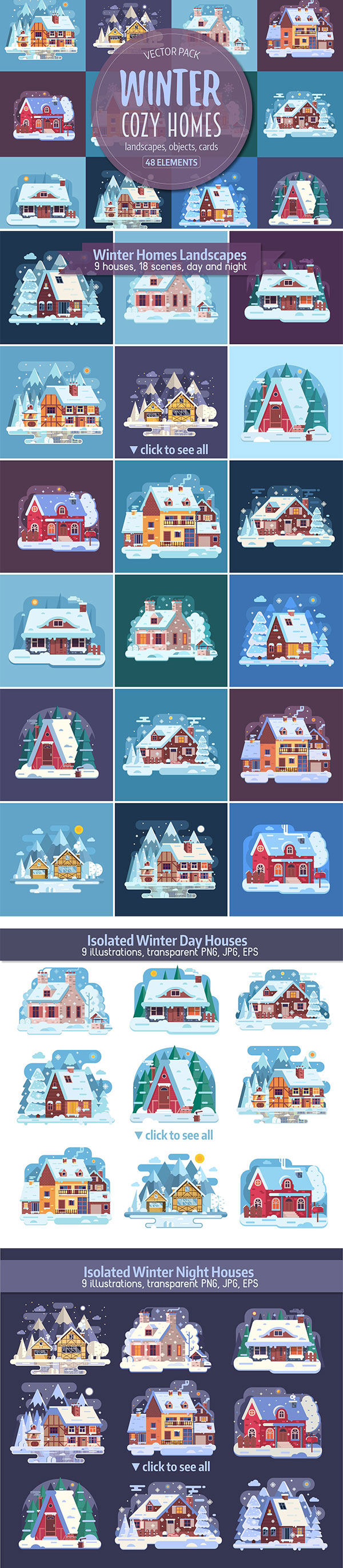 卡通冬季房子矢量