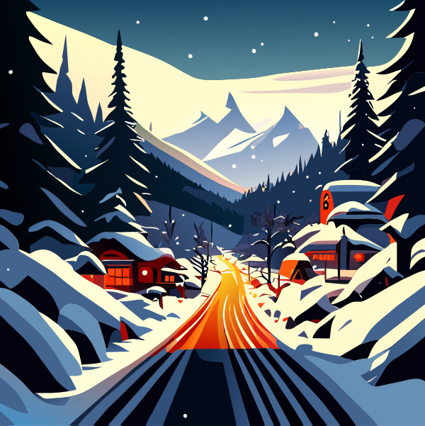 冬季雪乡风景矢量插画