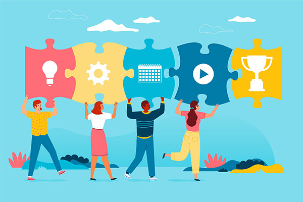 手工商务拼图插画